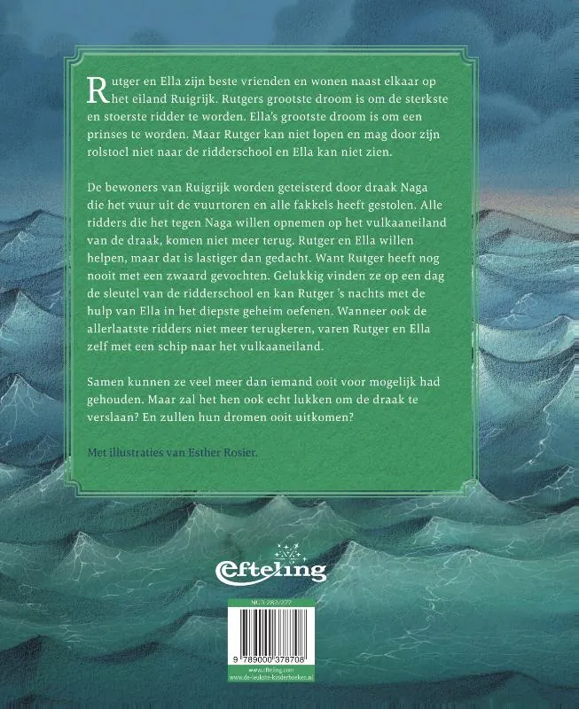 De bewoners van Ruigrijk worden geteisterd door draak Naga die het vuur uit de vuurtoren en alle fakkels gestolen heeft. Alle ridders die het tegen Naga willen opnemen op het vulkaaneiland van de draak, komen niet meer terug. Rutger en Ella willen helpen, maar dat is lastiger dan gedacht. Want Rutger heeft nog nooit met een zwaard gevochten. Gelukkig vinden ze op een dag de sleutel van de ridderschool en kan Rutger ’s nachts met hulp van Ella in het diepste geheim oefenen. Wanneer ook de allerlaatste ridders niet meer terugkeren, varen Rutger en Ella zelf met een schip naar het vulkaaneiland.