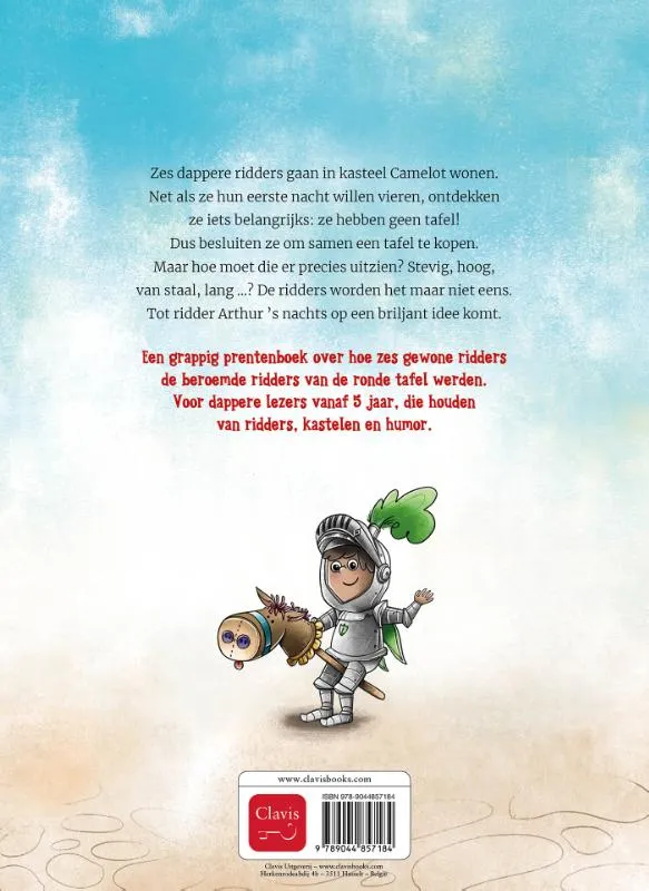 Zes dappere ridders gaan in kasteel Camelot wonen. Net als ze hun eerste nacht willen vieren, ontdekken ze iets belangrijks: ze hebben geen tafel! Dus besluiten ze om samen een tafel te kopen. Maar hoe moet die er precies uitzien? Stevig, hoog, van staal, lang …? De ridders worden het maar niet eens. Tot ridder Arthur ’s nachts op een briljant idee komt.Een grappig prentenboek over hoe zes gewone ridders de beroemde ridders van de ronde tafel werden.Voor dappere lezers vanaf 5 jaar, die houden van ridders, kastelen en humor.