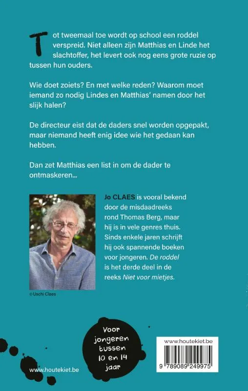 De roddel is een spannend jeugdboek en het derde deel in de serie Niet voor mietjes van de thrillerauteur en Gouden Strop-winnaar Jo Claes.