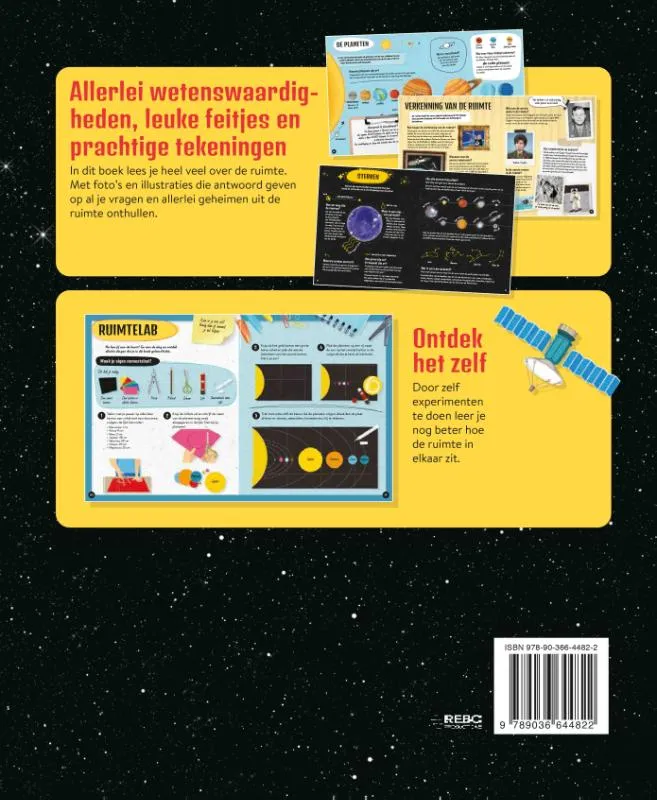 In dit boek lees je heel veel over de ruimte. Met foto’s en illustraties die antwoord geven op al je vragen en allerlei geheimen uit de ruimte onthullen. Door zelf experimenten te doen leer je nog beter hoe de ruimte in elkaar zit.