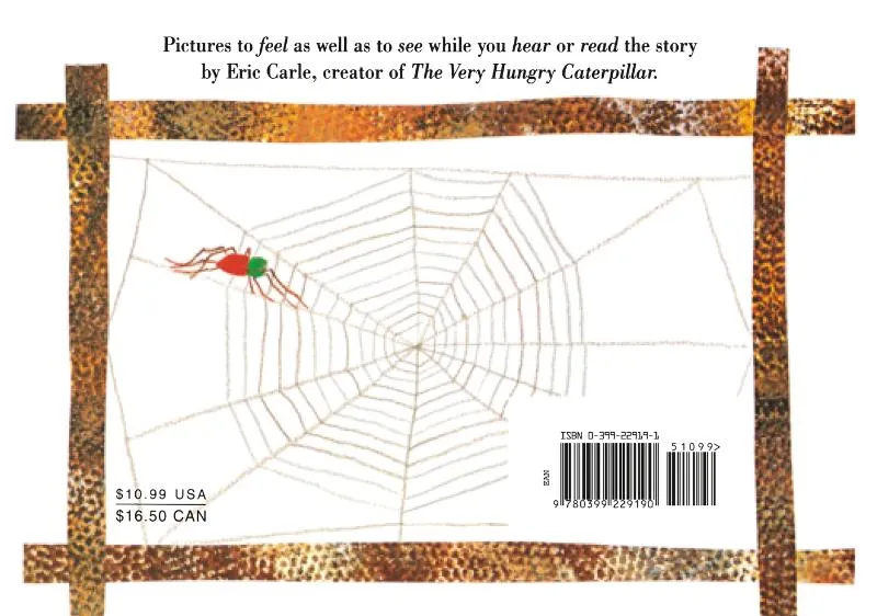Op een mooie morgen wordt een spin door een zacht briesje door de lucht gedragen. Een ragfijne draad sliert achter haar aan. Ze landt op een hek bij een boerderij en begint een web te weven. Een web dat je echt vóélt groeien als je met je vingers over de bladzijden gaat!