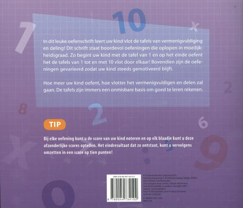 In dit leuke oefenschrift leert uw kind vlot de tafels van vermenigvuldiging en deling! Dit schrift staat boordevol oefeningen die oplopengebouwd in moeilijkheidsgraad. Zo begint uw kind met de tafels van 1 en op het einde oefent het de tafels van 1 tot en met 10 vlot door elkaar! Bovendien zijn de oefeningen gevarieerd zodat uw kind steeds gemotiveerd blijft.