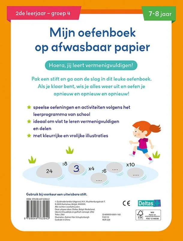Dit leuke oefenboek op afwasbaar papier is herbruikbaar en dus ideaal voor kinderen die de tafels van vermenigvuldiging willen oefenen. Laat je kind met een stift de oefeningen oplossen, uitwissen en opnieuw beginnen. Eindeloos oefenplezier verzekerd! Voor kinderen van 7 tot 8 jaar die willen leren vermenigvuldigen en delen TIP: Gebruik bij voorkeur een uitwisbare stift.