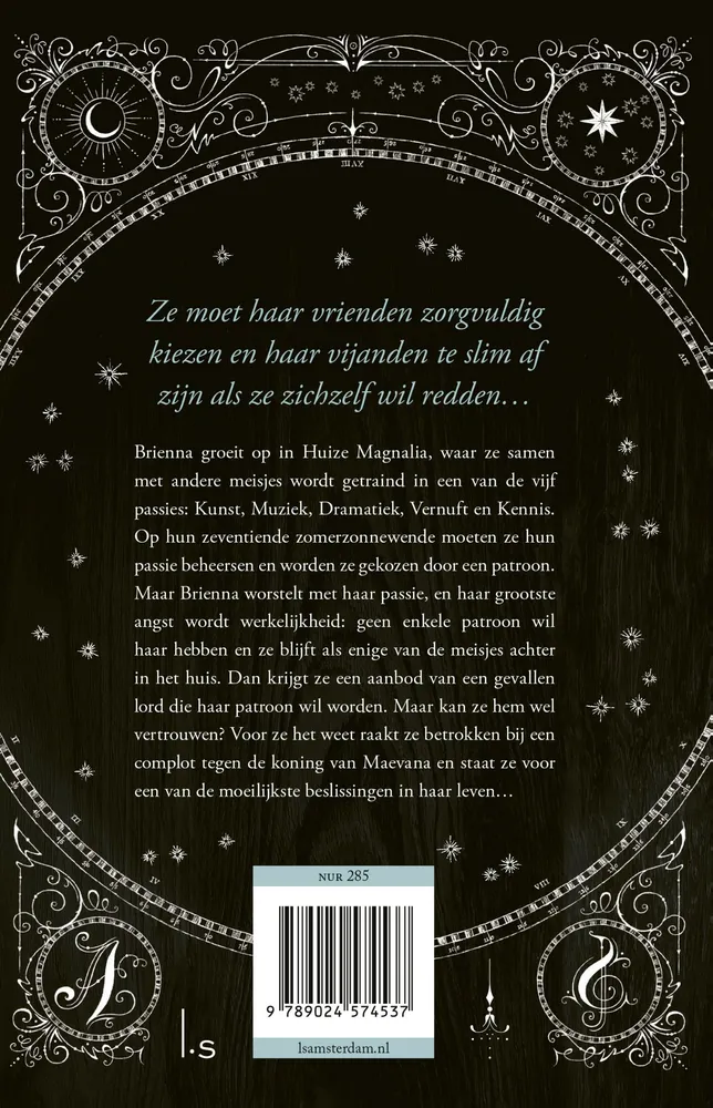 Brienna groeit op in Huize Magnalia, waar ze samen met andere meisjes wordt getraind in een van de vijf passies: Kunst, Muziek, Dramatiek, Vernuft en Kennis. De meisjes werken hard aan hun passie, zodat ze, als ze hun zeventiende zomerzonnewende vieren, door een patroon worden gekozen en financieel worden ondersteund. Maar Brienna’s leven neemt een abrupte wending als ze ongewild betrokken raakt bij een gevaarlijk complot tegen de koning van Maevana. Voor ze het weet komt ze terecht in een web van politieke intriges en staat ze voor de moeilijkste beslissing in haar leven…