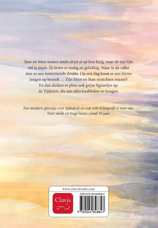 Stan en Stien wonen sinds altijd al op hun berg, waar de tijd lijkt stil te staan. Ze leven er rustig en gelukkig. Maar in de vallei zien ze een toenemende drukte. Op een dag komt er een kleine jongen op bezoek … Of zijn zij misschien reuzen? En dan duiken er plots ook grijze figuurtjes op: de Tijdeters, die aan alles knabbelen en knagen.