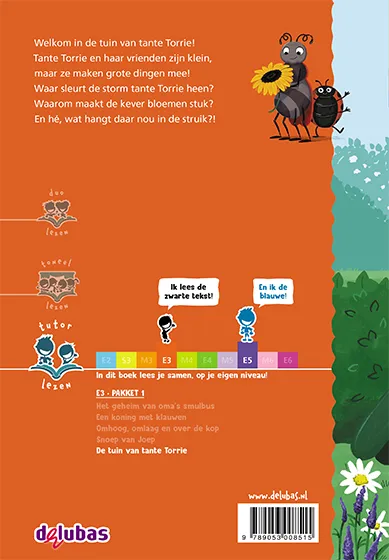 De tuin van tante Torrie is een boek uit het E3 pakket 1 tutorlezen van Uitgeverij Delubas, speciaal ontwikkeld voor tutorlezen, met E3 als leesniveau voor de beginnende of zwakkere lezer.