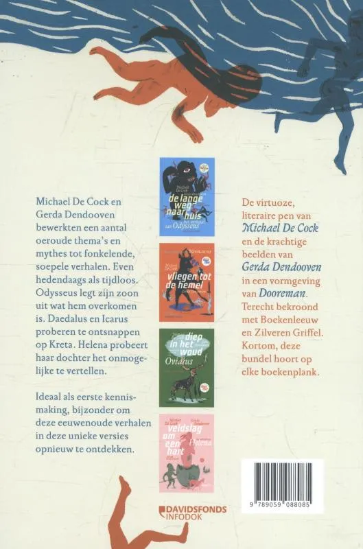 Bundeling van Griekse mythen over o.a. Odysseus, de Minotaurus, Orpheus en Eurydice, Narcissus en Helena. Met kunstzinnige illustraties in zwart-wit of met enkele basiskleuren. Vanaf ca. 10 t/m 14 jaar.