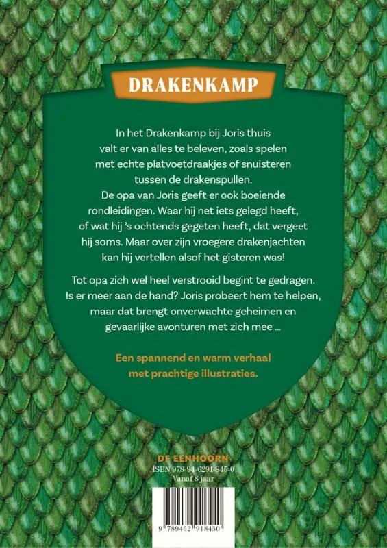 In het Drakenkamp bij Joris thuis valt er van alles te beleven, zoals spelen met echte platvoetdraakjes en snuisteren tussen de drakenspullen. De opa van Joris geeft er ook boeiende rondleidingen. Waar hij net iets gelegd heeft, of wat hij ’s ochtends gegeten heeft, dat vergeet hij soms. Maar over zijn vroegere drakenjachten kan hij vertellen alsof het gisteren was! Tot opa zich wel heel verstrooid begint te gedragen … Joris probeert hem te helpen, maar belandt zo in een onverwacht avontuur dat hem diep in een vergeten vallei brengt.
