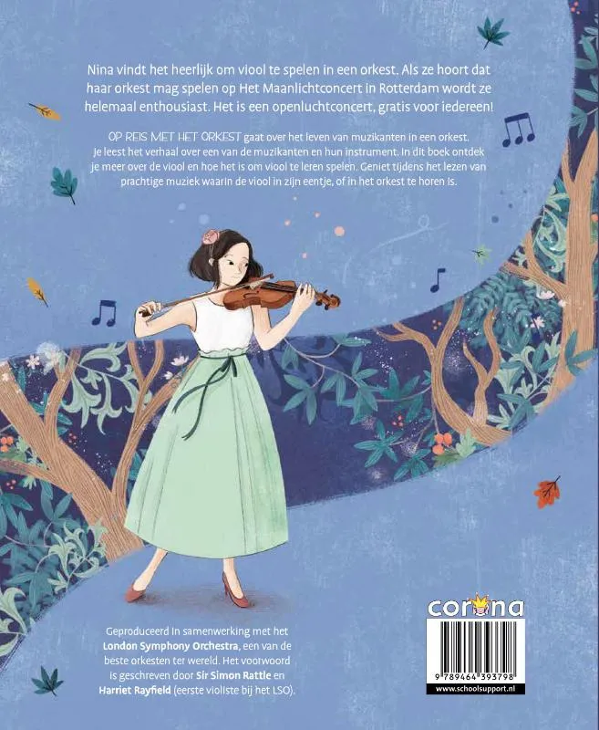 ‘Op reis met het orkest’ gaat over het leven van muzikanten in een orkest. Je leest het verhaal over een van de muzikanten en hun instrument. In dit boek ontdek je meer over de viool en hoe het is om viool te leren spelen. Geniet tijdens het lezen van prachtige muziek waarin de viool in zijn eentje, of in het orkest te horen is.