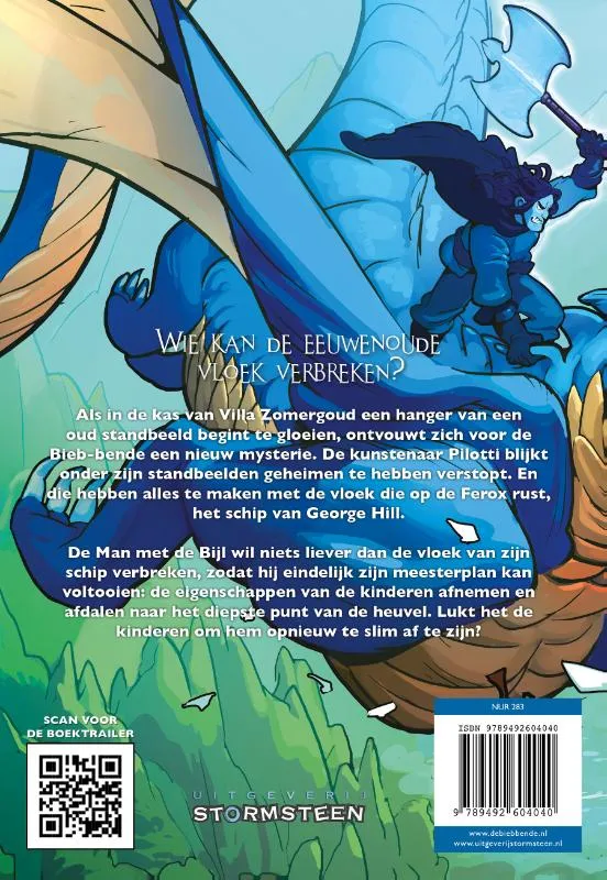 Als in de kas van Villa Zomergoud een hanger van een oud standbeeld begint te gloeien, ontvouwt zich voor de Bieb-bende een nieuw mysterie. De kunstenaar Pilotti blijkt onder zijn standbeelden geheimen te hebben verstopt. En die hebben alles te maken met de vloek die op de Ferox rust, het schip van George Hill.