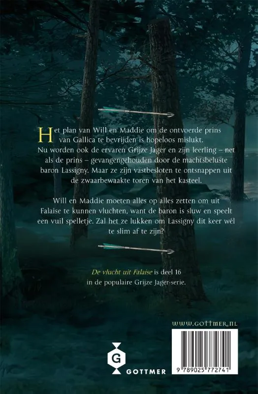 ‘De Grijze Jager 16 – De vlucht uit Falaise’ is deel 16 in de populaire serie van John Flanagan. In het vervolg op de spannende cliffhanger van deel 15 ‘De vermiste prins’ lees je hoe het verder gaat met Maddie en Will. Will en Maddie zijn gevangenen van de machtsbeluste baron Lassigny, die ook de prins die zij hadden willen bevrijden, heeft ontvoerd. Kunnen ze ontsnappen, en hun missie voltooien door de prins veilig thuis te krijgen? De situatie lijkt almaar slechter te worden. De baron speelt een vuil spelletje en de prins berust in zijn lot. Alle hoop op ontsnapping lijkt verloren, maar dan krijgen ze hulp uit onverwachte hoek. Het blijkt maar weer eens dat Grijze Jagers nog niet zo makkelijk opgeven, hoe onmogelijk de missie ook lijkt.