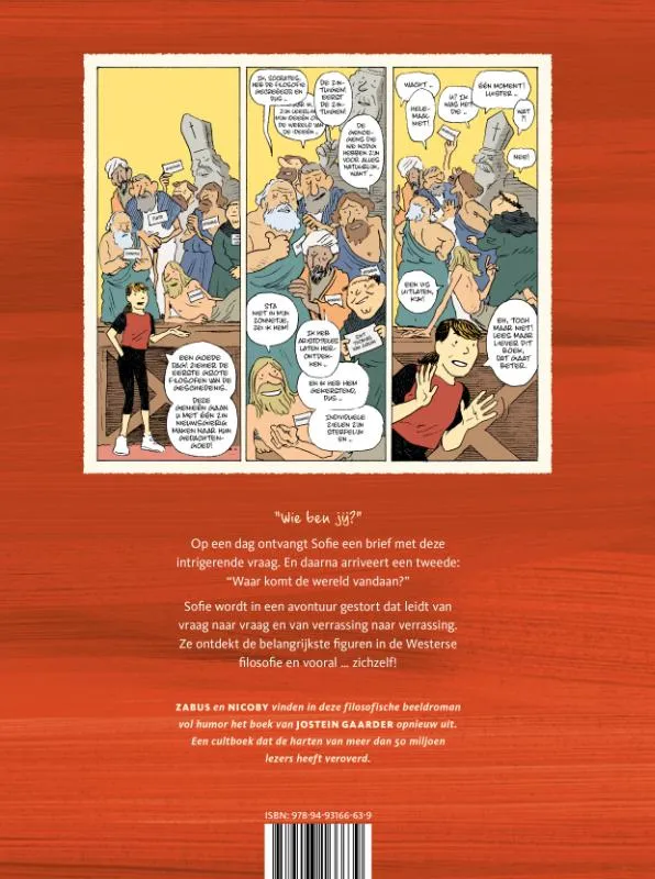 Ballonstrip over een 15-jarig meisje dat aan de hand van een leermeester door de geschiedenis van de filosofie wandelt