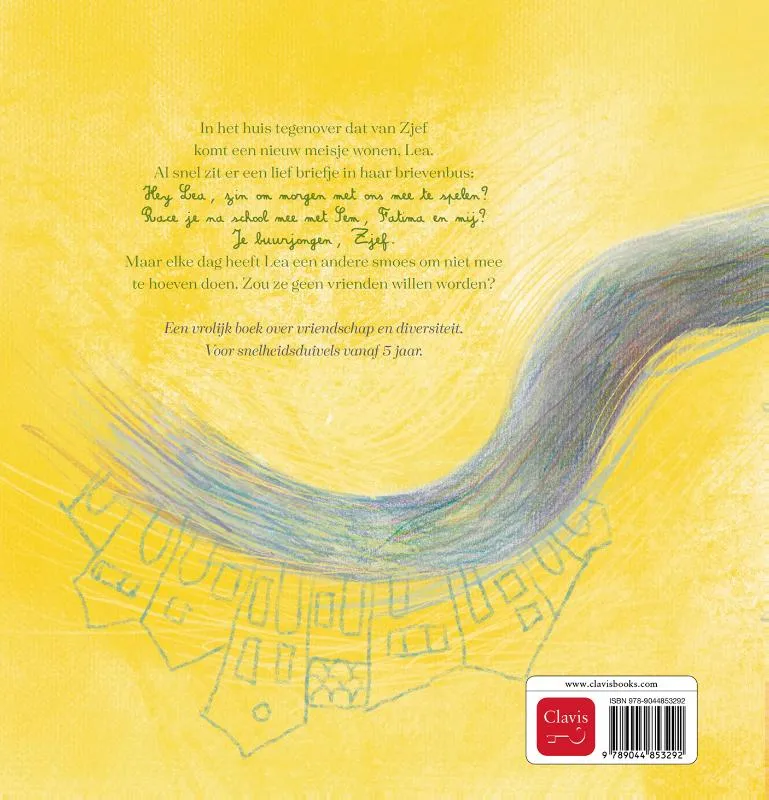 In het huis tegenover dat van Zjef komt een nieuw meisje wonen, Lea. Al snel zit er een lief briefje in haar brievenbus: Hey Lea, zin om morgen met ons mee te spelen? Race je na school mee met Sem, Fatima en mij? Je buurjongen, Zjef.