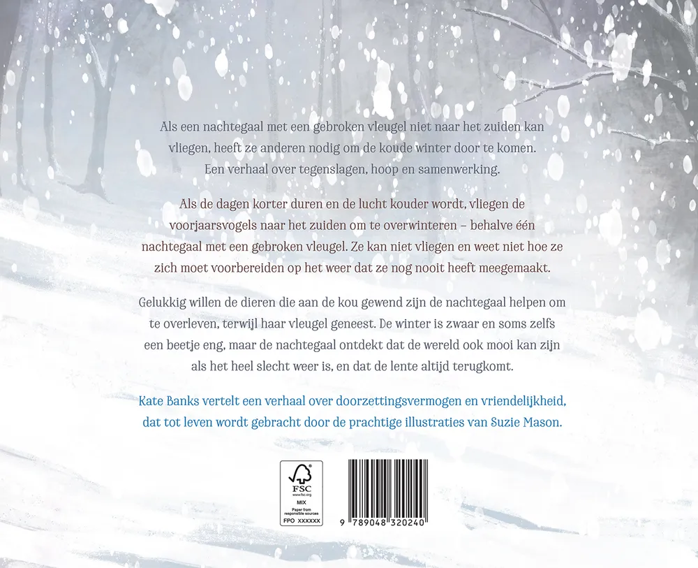 Gelukkig willen de dieren die aan de kou gewend zijn de nachtegaal helpen om te overleven, terwijl haar vleugel geneest. De winter is zwaar en soms zelfs een beetje eng, maar de nachtegaal ontdekt dat de wereld ook mooi kan zijn als het heel slecht weer is, en dat de lente altijd terugkomt.