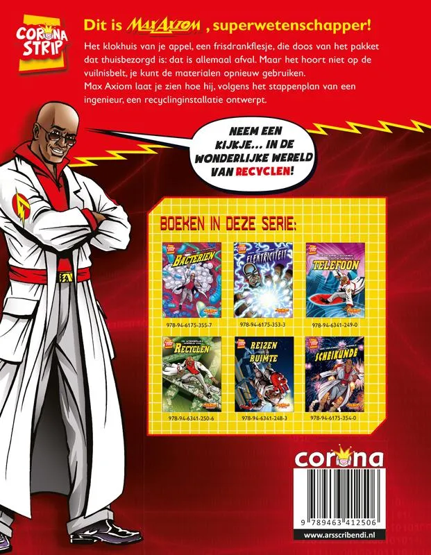 Het klokhuis van je appel, een frisdrankflesje, die doos van het pakket dat thuisbezorgd is: dat is allemaal afval. Maar het hoort niet op de vuilnisbelt, je kunt de materialen opnieuw gebruiken. Max Axiom laat je zien hoe hij, volgens het stappenplan van een ingenieur, een recyclinginstallatie ontwerpt.