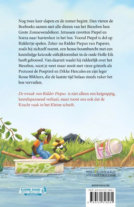 Nog twee keer slapen en de zomer begint. Dan vieren de Boeboeks samen met alle dieren van het Biezebos hun Grote Zonnewendefeest. Intussen ravotten Piepel en Soeza naar hartenlust in het bos. Vooral Piepel is dol op Riddertje spelen. Zeker nu Ridder Piepus van Papaver,zoals hij zichzelf noemt, een heuse boomburcht met een keutelnijge keicoole uitkijktorenhut in de oude Holle Eik heeft gebouwd. Van daaruit waakt hij ridderlijk over het Biezebos, want je weet maar nooit met vieze griezels als Protzooi de Poeptrol en Dikke Hercules en zijn leger Rosse Blikkers, die de laatste tijd helaas steeds vaker het bos vervuilen.