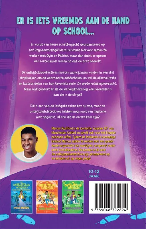 Er wordt een heuse schattenjacht georganiseerd op het Reynaertcollege! Marcus besluit hiervoor samen te werken met Oyin en Patrick, maar dan duikt er opeens een buitenaards wezen op dat de pret bederft. De ontbijtclubdetectives moeten aanwijzingen vinden in een stel stripboeken om de waarheid te achterhalen, en wel de allernieuwste en laatste delen van hun favoriete serie: De grote ruimtespeurtocht. Maar wat gebeurt er als de werkelijkheid nog veel vreemder is dan die in de strips? Dit is een van de lastigste zaken tot nu toe, maar de ontbijtclubdetectives hebben nog nooit een mysterie níét opgelost. Of zou dit de eerste keer zijn?