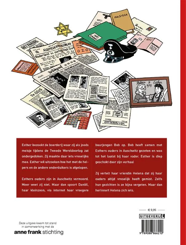 Esther bezoekt de boerderij waar zij als joods meisje tijdens de Tweede Wereldoorlog zat ondergedoken. Zij maakte daar iets vreselijks mee. Esther wil uitzoeken hoe het met de helpers en de andere onderduikers is afgelopen. Esthers ouders zijn in Auschwitz vermoord. Meer weet zij niet. Maar dan spoort Daniël, haar kleinzoon, via internet haar vroegere buurjongen Bob op. Bob heeft samen met Esthers ouders in Auschwitz gezeten en was tot het laatst bij haar vader. Esther is diep geschokt door zijn verhaal Zij vertelt haar vriendin Helena dat zij haar ouders altijd vreselijk heeft gemist. Zelfs hun gezichten is ze bijna vergeten. Maar dan herinnert Helena zich iets.
