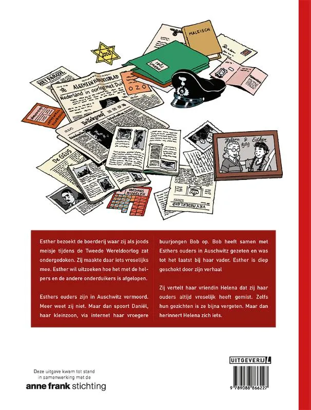Esther bezoekt de boerderij waar zij als joods meisje tijdens de Tweede Wereldoorlog zat ondergedoken. Zij maakte daar iets vreselijks mee. Esther wil uitzoeken hoe het met de helpers en de andere onderduikers is afgelopen. Esthers ouders zijn in Auschwitz vermoord. Meer weet zij niet. Maar dan spoort Daniël, haar kleinzoon, via internet haar vroegere buurjongen Bob op. Bob heeft samen met Esthers ouders in Auschwitz gezeten en was tot het laatst bij haar vader. Esther is diep geschokt door zijn verhaal Zij vertelt haar vriendin Helena dat zij haar ouders altijd vreselijk heeft gemist. Zelfs hun gezichten is ze bijna vergeten. Maar dan herinnert Helena zich iets.