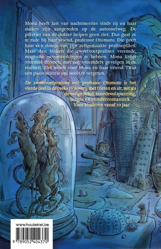 Mona heeft last van nachtmerries sinds zij en haar ouders zijn aangereden op de autosnelweg. De pilletjes van de dokter helpen geen zier. Dus gaat ze ten rade bij haar vriend, professor Otomoto. Die geeft haar een doosje van zijn zelfgemaakte pralinepillen. Maar dan blijken die zweetvoetpralines vreemde, magische nevenwerkingen te hebben. Mona krijgt vreemde dromen, met nog vreemdere gevolgen in de realiteit. Het wordt voor Mona en haar vriend Titus een paasvakantie om nooit te vergeten.<br><br>‘De zweetvoetpralines van professor Otomoto’ is het vierde deel in de reeks ‘(S)toverij met frieten’ en zit, net als de vorige delen, boordevol spanning, magie en vlinderromantiek.