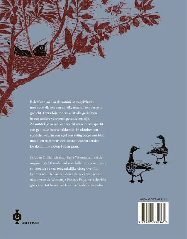 In de unieke kinderpoëziebundel ‘Dichter bij de seizoenen’ beleeft de lezer een jaar in de natuur in vogelvlucht. Voor elk seizoen en elke maand staat in deze sfeervolle bundel een passend gedicht. Wat deze gedichten extra bijzonder maakt, is dat ze allemaal in verschillende versvormen zijn geschreven. Taalkunstenares Bette Westera schreef bijvoorbeeld voor mei een spicht, waarin een specht een gat in de boom hakketakt, voor oktober een rondelet waarin een egel een veilig bedje van blad maakt, en voor januari een sonnet waarin eenden kwakend in wakken baden gaan. Naast de seizoensgedichten geeft de bundel ook uitleg over de verschillende versvormen en tips om zelf met taal te spelen. Elk seizoen opent met een prachtige haiku. Bekroond illustrator Henriette Boerendans wekt de rijke gedichten tot leven met haar treffende houtsneden.<br><br><br>’Dichter bij de seizoenen’ is een bijzondere samenwerking tussen prijswinnend auteur Bette Westera en topillustrator Henriette Boerendans. Eerder werkten zij samen aan het indrukwekkende alfabetboek ‘Aap Beer Zebra’ (genomineerd voor de Woutertje Pieterse Prijs) en ‘Ik wil een wiegje worden, zei de wilg’. ‘Dichter bij de seizoenen’ is geschikt voor lezers van 9 jaar en ouder.