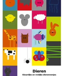 Dieren is een dieren prentenboek met versjes. Ieder dier heeft zijn eigen versje. De illustraties van de dieren zijn simpel, vrolijk, kleurrijk en fris. Vooral voor kinderen leuk om naar te kijken. De versjes zeggen allemaal iets over een dier. De vis haalt adem met zijn kieuwen of een zeug is een vrouwtjesvarken. Alle dieren hebben iets waar wij ze aan kunnen herkennen.