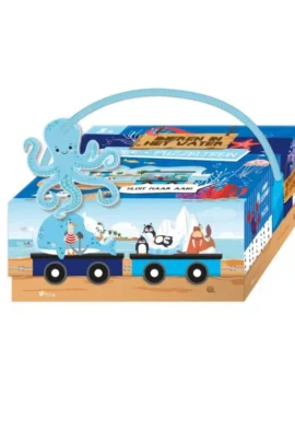 De zeedieren gaan op reis met de trein. Ga je gezellig mee? Tijdens het lezen van het boek kom je allerlei verschillende dieren tegen. Lukt het om de stukjes van de treinpuzzel in de goede volgorde te leggen? De puzzeltrein is 130cm lang en gemaakt van mooi stevig karton, net zoals het boek, en kan dus tegen een stootje. Maak de trein nog langer door ook andere treinpuzzels aan te laten sluiten! Verschillende thema’s beschikbaar.