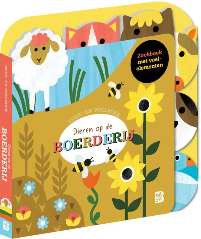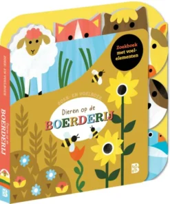 Leuk kartonboek met vilten voelelementen om samen met je peuter op ontdekking te gaan op de boerderij. Aai de poes, het geitje en de eendjes. Waar verstopt het konijn zich?