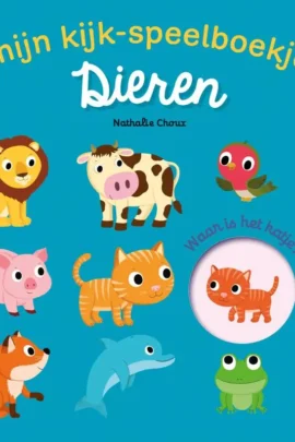 Een vrolijk kijk-speelboekje over allerlei soorten dieren voor kinderen vanaf 2 jaar.
