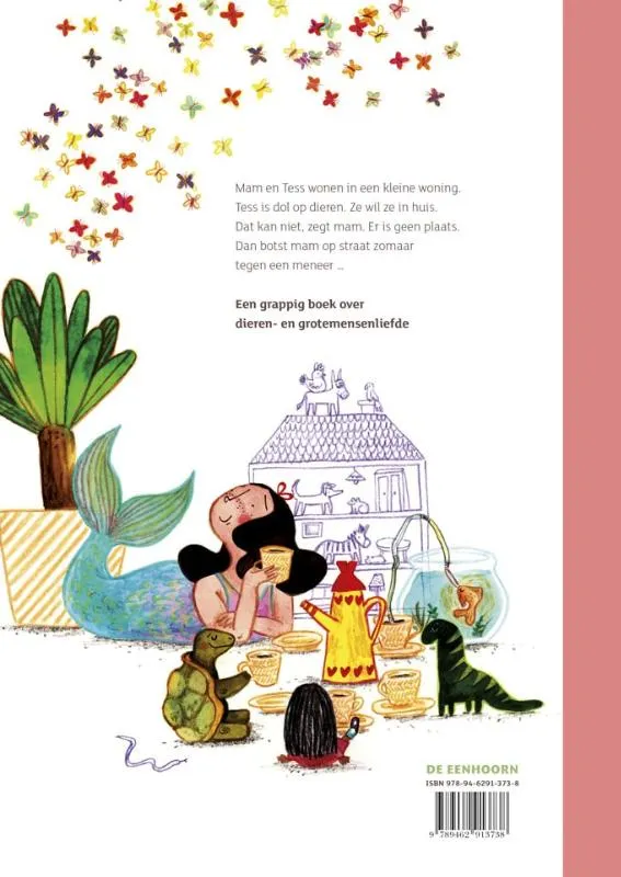 Tess droomt van een huis vol dieren. Maar dat kan niet, vindt mam. Mam en Tess wonen klein, er is niet genoeg plaats. Heel wat dieren zoeken een nieuwe thuis: Zoef de hond, Langoor de ezel, Kip Tok, Streep de zebra … Waar moeten die allemaal heen? Op een dag botst mam zomaar tegen een meneer aan op straat.