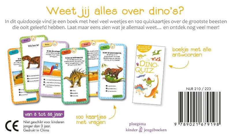 In dit quizdoosje vind je een boek met heel veel weetjes en 100 quizkaartjes over de grootste beesten die ooit geleefd hebben. Laat maar eens zien wat je allemaal weet… en ontdek nog veel meer!