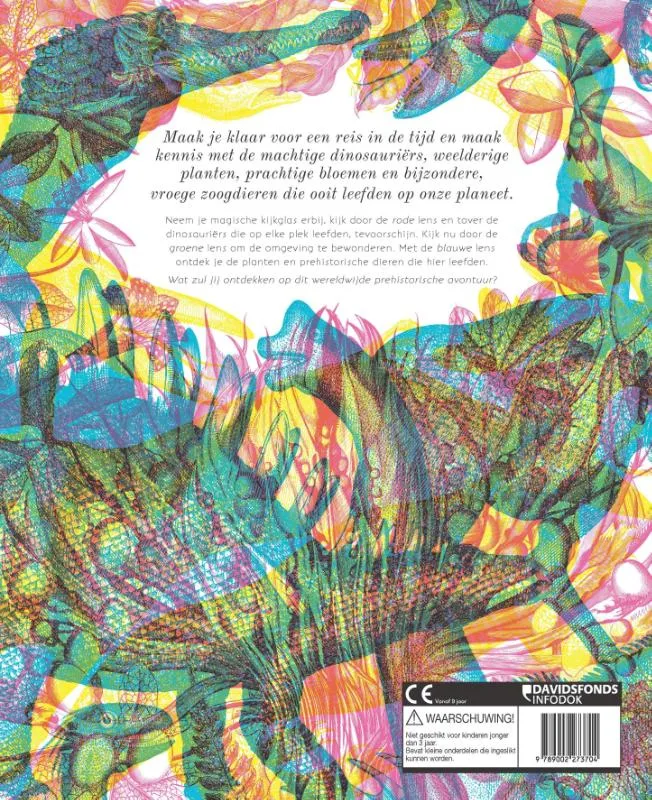 Maak je klaar voor een reis in de tijd en maak kennis met de machtige dinosauriërs, weelderige planten, prachtige bloemen en bijzondere, vroege zoogdieren die ooit leefden op onze planeet. Neem je magische kijkglas erbij, kijk door de rode lens en tover de dinosauriërs die op elke plek leefden, tevoorschijn. Kijk nu door de groene lens om de omgeving te bewonderen. Met de blauwe lens ontdek je de planten en prehistorische dieren die hier leefden. Wat zul jij ontdekken op dit wereldwijde prehistorische avontuur?
