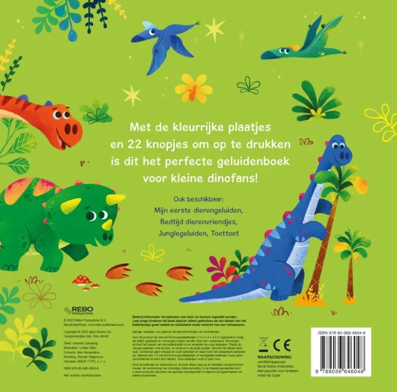 Vrolijk geïllustreerd geluidenboek, met 22 verschillende dinogeluiden en prachtige zoekplaten.