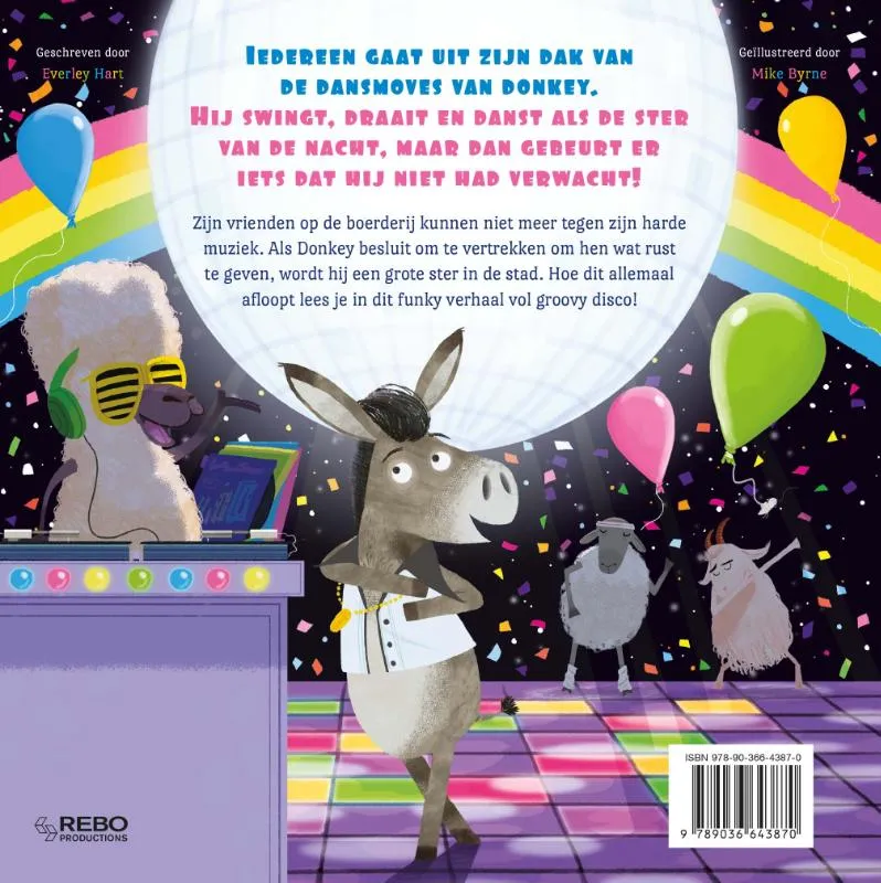 Zijn vrienden op de boerderij kunnen niet meer tegen zijn harde muziek. Als Donkey besluit om te vertrekken om hen wat rust te geven, wordt hij een grote ster in de stad. Hoe dit allemaal afloopt lees je in dit funky verhaal vol groovy disco!