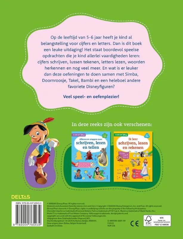 Niet is leuker dan oefenen met Disney! Dit boek voor kinderen van 5 tot 6 jaar staat boordevol speelse opdrachten waarmee je kind leert schrijven, lezen en tellen. En dat allemaal samen met Simba, Doornroosje, Takel, Bambi en hun andere favoriete Disneyfiguren! Veel speel- en oefenplezier!