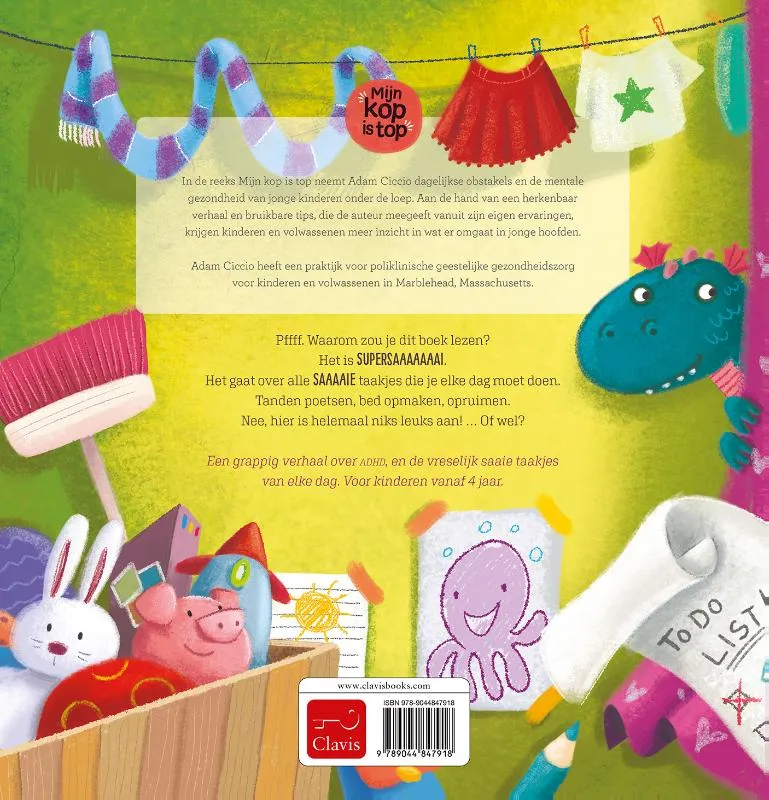 Een grappig verhaal over ADHD, en de vreselijk saaie taakjes van elke dag. Voor kinderen vanaf 4 jaar.