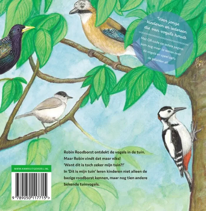 Robin Roodborst ontdekt de vogels in de tuin. Maar Robin vindt dat maar niks! ‘Want dit is toch zeker míjń tuin?!’ In ‘Dit is míjń tuin’ leren kinderen niet alleen de bazige roodborst kennen, maar nog tien andere bekende tuinvogels. Welke vogels komen eten in de winter, wie maakt er een nestje, wat eten ze en wat kun je voor de vogels doen? Dit vrolijke prentenboek is voor jonge kinderen en iedereen die van vogels houdt. Met QR-code op iedere pagina kom je nog meer te weten over de vogels en speel je zelfs de geluiden af!