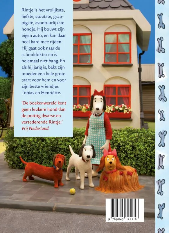 Rintje is het vrolijkste, liefste, stoutste, grappigste, avontuurlijkste hondje. Hij bouwt zijn eigen auto, en kan daar heel hard mee rijden. Hij gaat ook naar de schooldokter en is helemaal niet bang. En als hij jarig is, bakt zijn moeder een hele grote taart voor hem en voor zijn beste vriendjes Tobias en Henriëtte.
