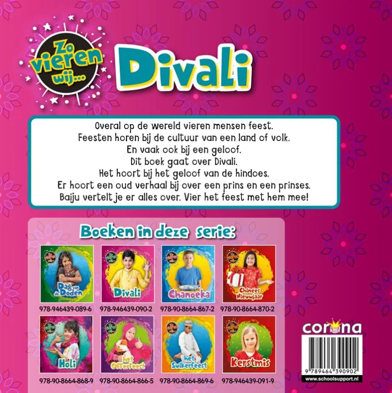 Overal op de wereld vieren mensen feest. Feesten horen bij de cultuur van een land of volk. En vaak ook bij een geloof. Dit boek gaat over Divali. Het hoort bij het geloof van de hindoes. Er hoort een oud verhaal bij over een prins en een prinses. Baiju vertelt je er alles over. Vier het feest met hem mee!
