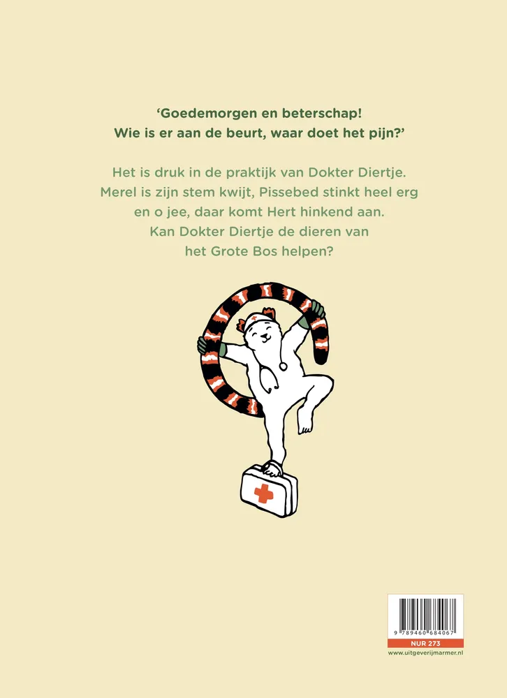 Het is druk in de praktijk van Dokter Diertje. Merel is zijn stem kwijt, Pissebed stinkt heel erg en o jee, daar komt Hert hinkend aan. Kan Dokter Diertje de dieren van het Grote Bos helpen?