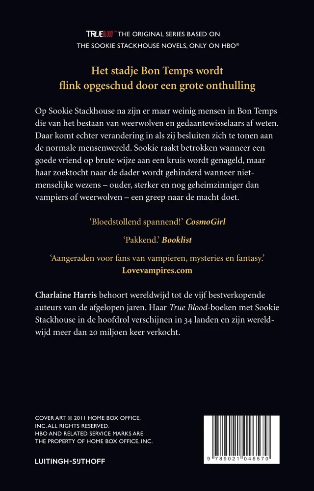 In dit negende deel van Charlaine Harris’ internationale bestsellerserie True Blood wordt het stadje Bon Temps flink opgeschud. De inspiratiebron voor de HBO Original serie True Blood.