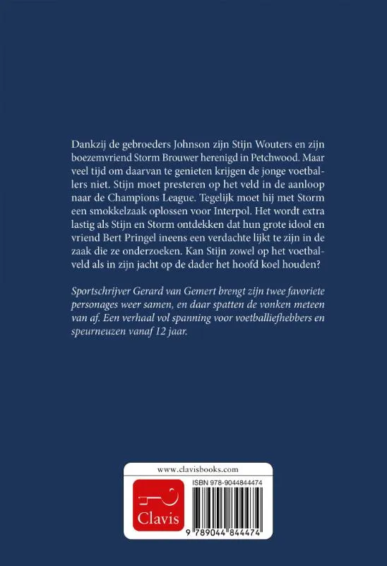 Dankzij de gebroeders Johnson zijn Stijn Wouters en zijn boezemvriend Storm Brouwer herenigd in Petchwood. Maar veel tijd om daarvan te genieten krijgen de jonge voetballers niet. Stijn moet presteren op het veld in de aanloop naar de Champions League. Tegelijk moet hij met Storm een smokkelzaak oplossen voor Interpol. Het wordt extra lastig als Stijn en Storm ontdekken dat hun grote idool en vriend Bert Pringel ineens een verdachte lijkt te zijn in de zaak die ze onderzoeken. Kan Stijn zowel op het voetbalveld als in zijn jacht op de dader het hoofd koel houden? Sportschrijver Gerard van Gemert brengt zijn twee favoriete personages weer samen, en daar spatten de vonken meteen van af. Een verhaal vol spanning voor voetballiefhebbers en speurneuzen vanaf 12 jaar