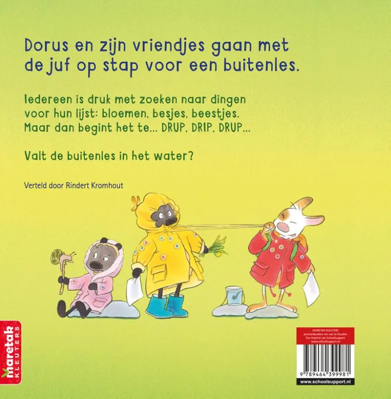 De klas van Dorus gaat op stap voor een les in de natuur. De hele klas heeft een lijst gekregen van dingen die ze moeten vinden in de natuur. Maar dan begint het te stortregenen en de klas komt vast te zitten op een eilandje in de kolkende rivier. Hoe moeten ze daar wegkomen? Gelukkig zijn de ouders van Eend in de buurt.