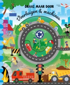 Overal om ons heen zijn voertuigen en machines te vinden. Op het land rijdt de boer in zijn tractor, in de stad is het druk op straat met auto’s en op de bouwplaats zie je hijskranen, graafmachines en kiepwagens. Door aan de stevige schijf te draaien verschijnt er telkens iets anders in de gaatjes! Een kleurrijk boek met vrolijke rijmpjes om voor te lezen.