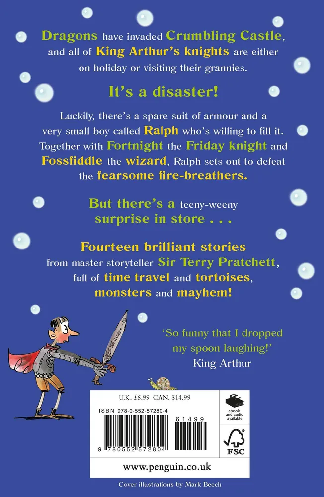 Dragons have invaded Crumbling Castle, and all of King Arthur’s knights are either on holiday or visiting their grannies. . Fourteen fantastically funny stories from master storyteller Sir Terry Pratchett, full of time travel and tortoises, monsters and mayhem!‘So funny I dropped my spoon laughing!’ – King Arthur