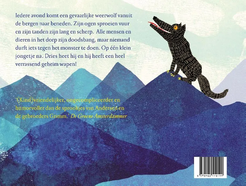 Iedere avond komt een gevaarlijke weerwolf vanuit de bergen naar beneden. Zijn ogen sproeien vuur en zijn tanden zijn lang en scherp. Alle mensen en dieren in het dorp zijn doodsbang, maar niemand durft iets tegen het monster te doen. Op één klein jongetje na. Dries heet hij en hij heeft een heel verrassend geheim wapen!<br><br>