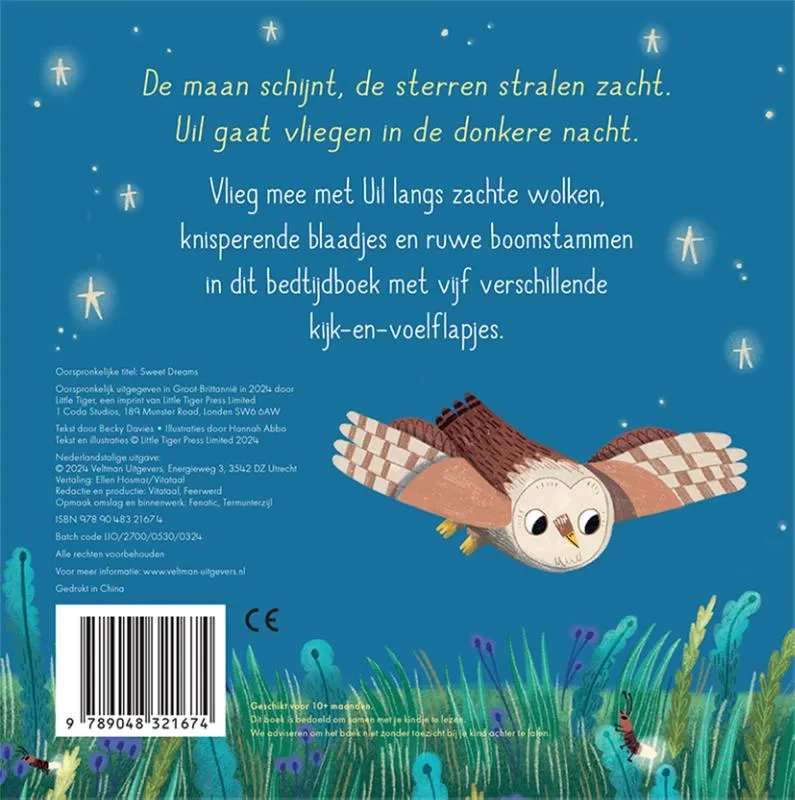 Vlieg mee met Uil langs zachte wolken, knisperende blaadjes en ruwe boomstammen in dit bedtijdboek met vijf verschillende kijk-en-voelflapjes.