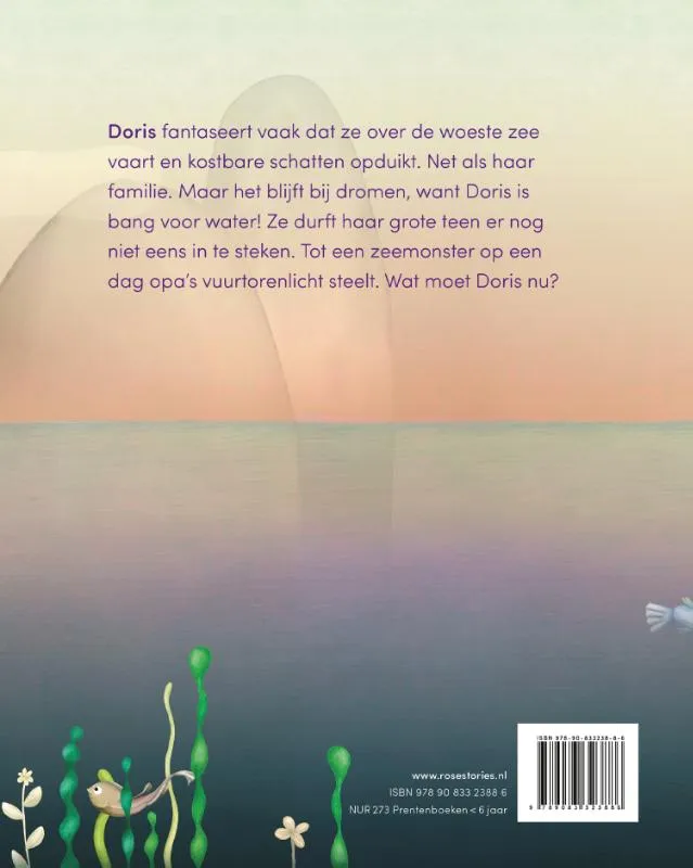 Doris fantaseert vaak dat ze over de woeste zee vaart en kostbare schatten opduikt. Net als haar familie. Maar het blijft bij dromen, want Doris is bang voor water! Ze durft haar grote teen er nog niet eens in te steken. Tot een zeemonster op een dag opa’s vuurtorenlicht steelt. Wat moet Doris nu?