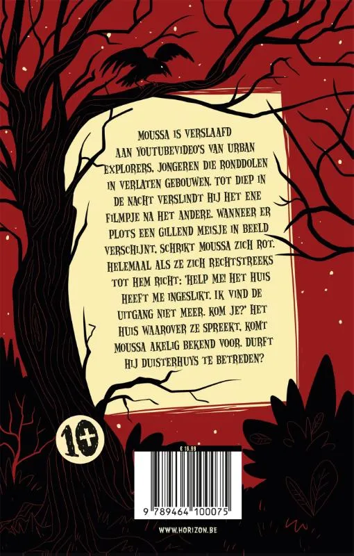 Moussa is verslaafd aan YouTube-video’s van urban explorers, jongeren die ronddolen in verlaten gebouwen. Tot diep in de nacht verslindt hij het ene filmpje na het andere.<br>Als er op een avond plots een gillend meisje in beeld verschijnt, schrikt Moussa zich rot. Helemaal als ze zich rechtstreeks tot hem richt: ‘Help me! Het huis heeft me ingeslikt. Ik vind de uitgang niet meer. Kom je?'<br>Het huis waar ze over spreekt komt Moussa akelig bekend voor. Lukt het hem de deuren van Duisterhuys voorgoed te sluiten?