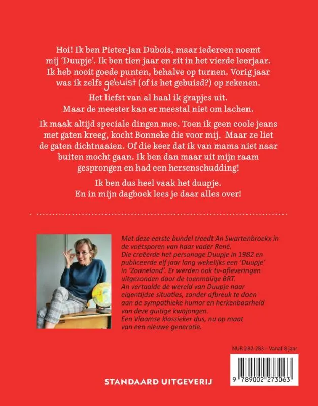 Met deze eerste bundel treedt An Swartenbroekx in de voetsporen van haar vader René. Die creëerde het personage Duupje in 1982 en publiceerde 11 jaar lang wekelijks een ‘Duupje’ in ‘Zonneland’. Er werden ook tv-afleveringen uitgezonden door de toenmalige BRT. An vertaalde de wereld van Duupje naar eigentijdse situaties, zonder afbreuk te doen aan de sympathieke humor en herkenbaarheid van deze guitige kwajongen. Een Vlaamse klassieker dus, nu op maat van een nieuwe generatie.
